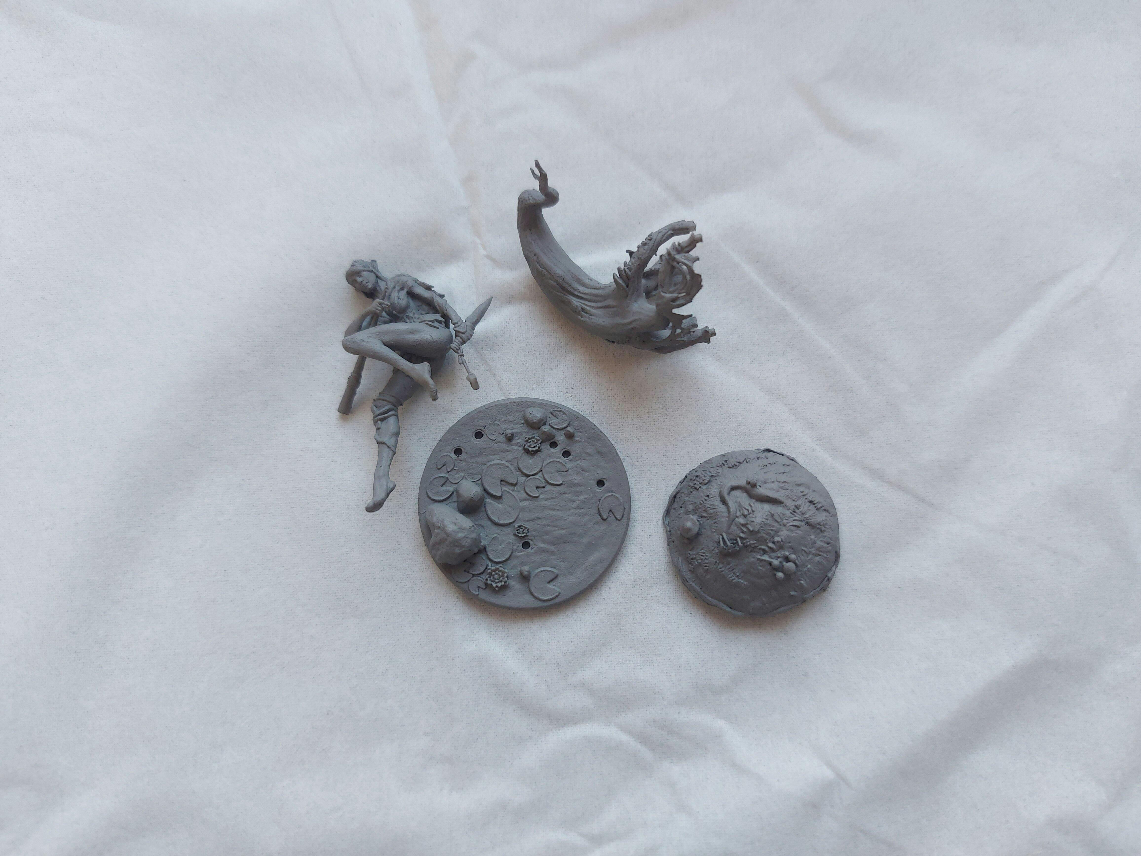 The miniature arrived carefully wrapped and in 4 pieces (Base, Nymph, Tree, Mushroom head). It is a small model, but of high quality with very fine details. There were almost no rests from the supports and not a lot of post-processing was necessary. I am really happy with my miniature, it could not be better.