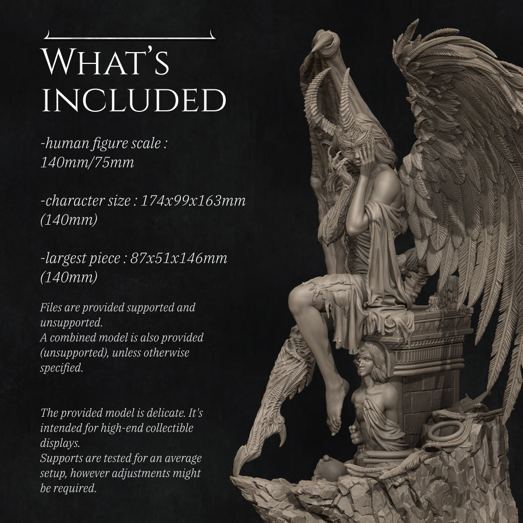 12K Druck. Miniaturen werden in fein Auflösung von 28um (0,028mm Schichthöhe) gedruckt, ein einem höchstmöglichen Detailgrad. Alle Figuren werden mit hochwertigem Kunstharz (Resin) gedruckt, je nach Verfügbarkeit verwende ich ein graues oder dunkelgraues Harz, welches sich durch eine außerordentlich hohe Detailtreue und niedrige Schrumpfungsrate auszeichnet. Nach Abschluss des Druckvorgangs wird jede Miniatur in Isopropanol gewaschen, um überschüssiges Resin zu entfernen. Beim 3D-Druck werden Stützstrukturen verwendet, welche eventuell sehr kleine Punkte auf der Miniaturoberfläche hinterlassen können. Diese Stützstrukturen werden von mir entfernt, aber es kann vorkommen, dass einige Stellen von dir gesäubert werden müssen. Dafür wird eine kleine Zange oder Bastelmesser gebraucht. Im Anschluss wird die Miniatur durch UV-Strahlung ausgehärtet und ist somit bereit für den Zusammenbau. Miniaturen werden nicht grundiert geliefert.